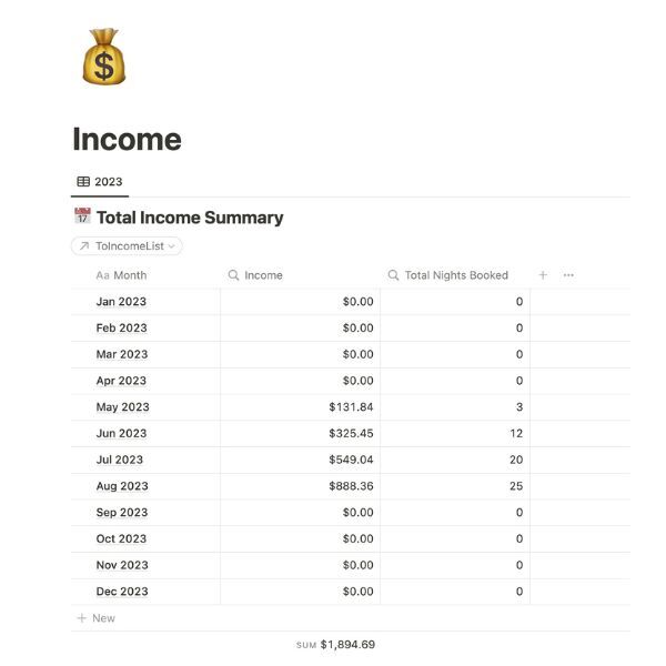 - Financial. Monitor your cash flow, including income and expenses. Manage income received from Airbnb per property per month. Detailed expense records include categories, property associations, and general expenses without specific property associations. The formula provides quick contribution margin insights. You can also track occupancy rates per property per month, with the formula providing a rough estimate for overlapping check-in and check-out dates in different months.