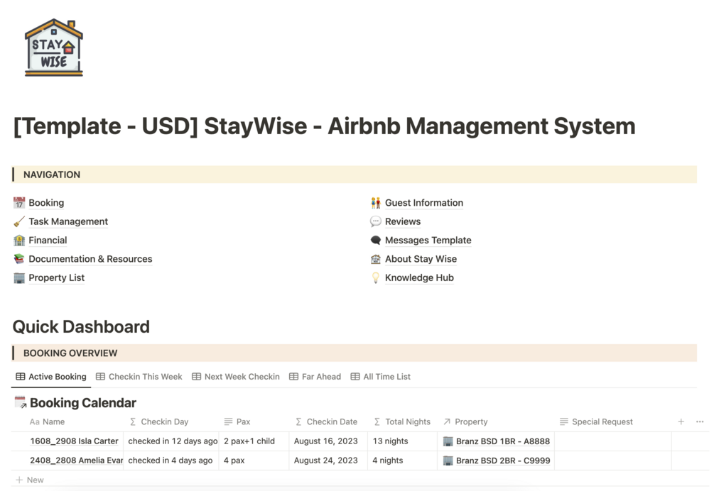 - [Template - other currency] StayWise - Airbnb Management System, created for users who transact in USD but need a column to state the amount in a specific currency of their choice. This template provides extra guidance on how to make these currency changes. Choose this if you want to get report not using USD, EUR or IDR currencies.